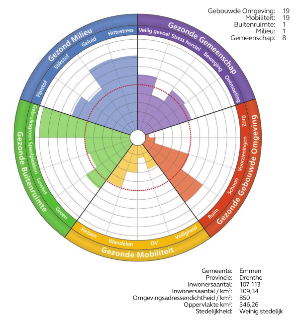 Het aantal huisartsen en apotheken is onvoldoende. Hoewel Emmen in twee domeinen het gezondst scoort, blijkt dit allerminst een garantie voor een goede gezondheid bij haar inwoners. Overgewicht bij volwassen komt in Emmen vaker voor dan gemiddeld in Nederland. Maar liefst 5,5% van de 40-plussers in Emmen heeft meer dan drie aandoeningen (hartziekten, diabetes, kanker, COPD, Parkinson/dementie).